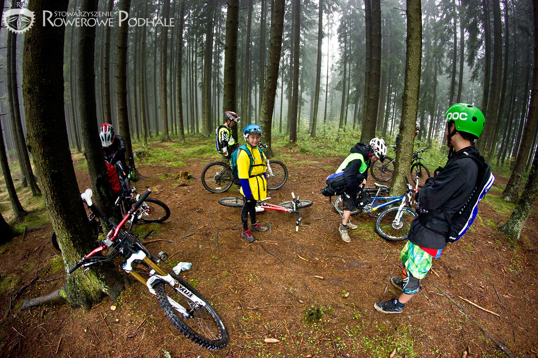 Mimo wszystko stawiliśmy się składem SRP o umówionej godzinie w budynku podstawówki na Skibówkach. Byliśmy ubrani w świeże soczyste ciuszki z przekonaniem, że w takich też wrócimy do domów. Dzieciaki nie odpuściły, żyły rajdem od dłuższego czasu i przywitały nas w pełnym rynsztunku oraz gotowości do wyjazdu na trasę. Pojechaliśmy, a niezłomne pociechy zainkasowały od nas spory pakiet szacunku.
