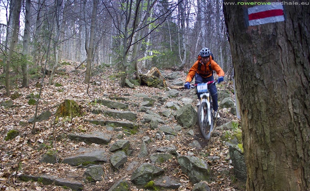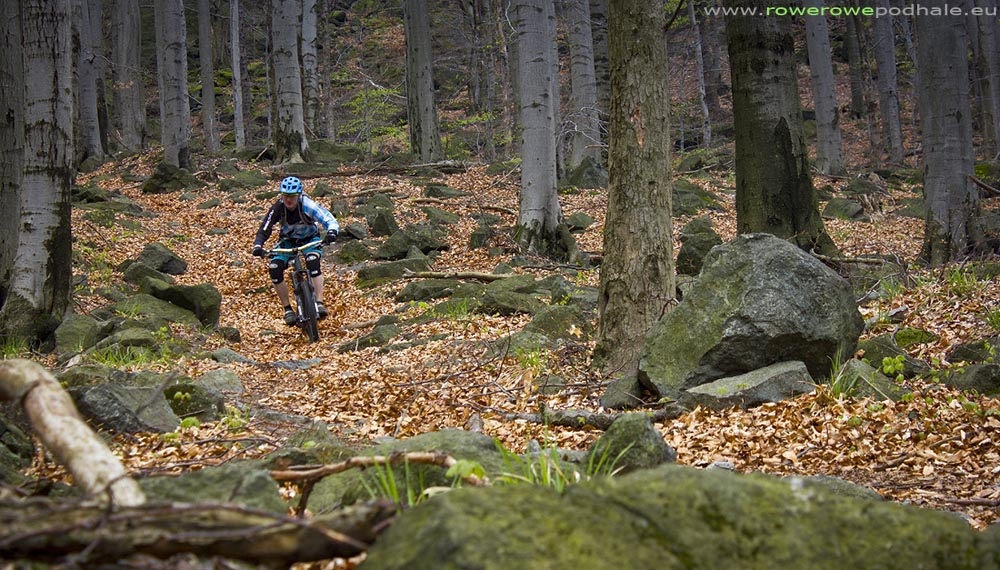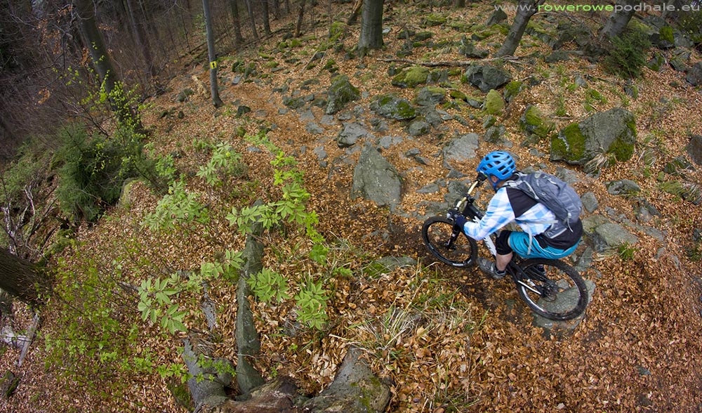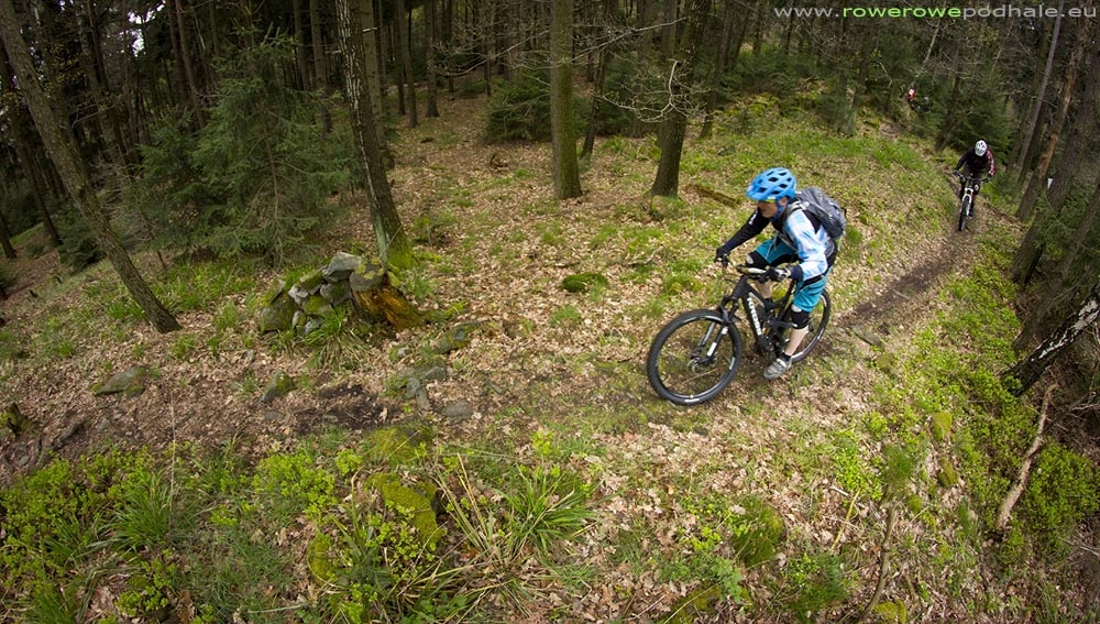 Przełęcz Tąpadła - Grupa Raduni - Ślęża [gpx]. Przedstawiona trasa została przejechana w ramach treningu przez zawodami EMTB. Odcinki zjazdowe w masywie Ślęży należą do bardzo trudnych - charakteryzują się występowaniem dużych głazów i niejednokrotnie opadają dosyć stromo. Odcinki w grupie Raduni są znacznie łatwiejsze - ścieżki wiodą wąskimi singlami i praktycznie nie występują na nich żadne skalne ogrody. W górnych partiach Raduni trasa przebiega przez świetliste dąbrowy, co podnosi walory estetyczne przejazdu. Wszystkie podjazdy na Raduni i Ślęży odbywają się szerokimi drogami stokowymi.