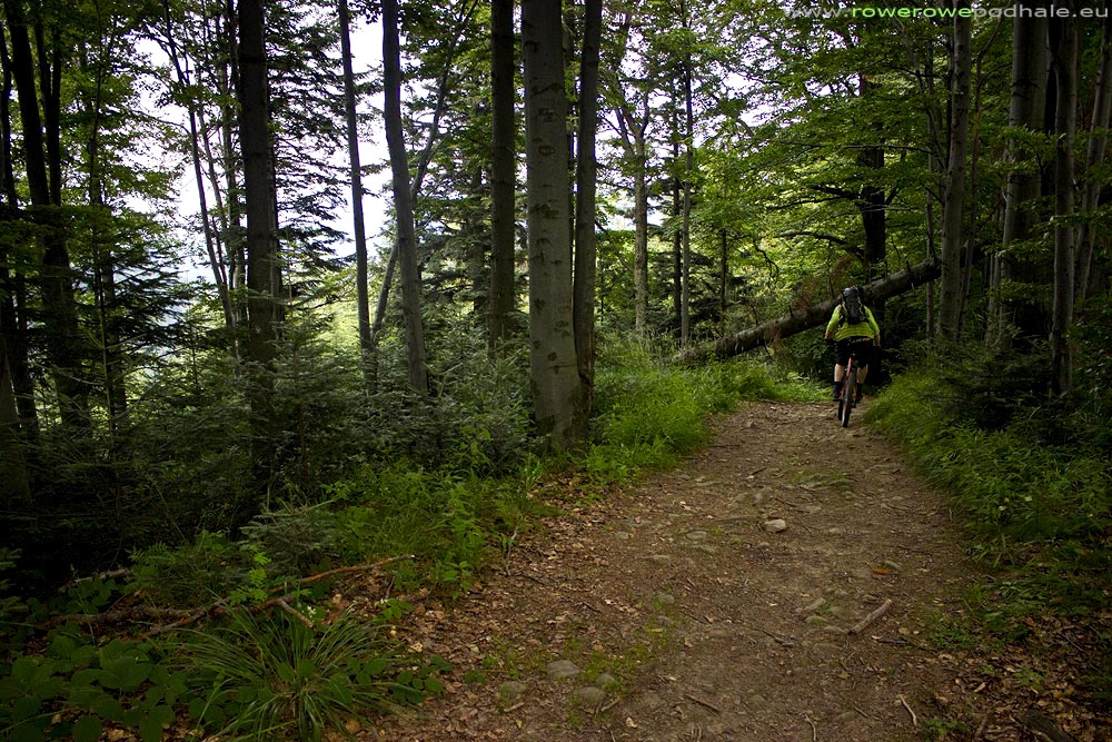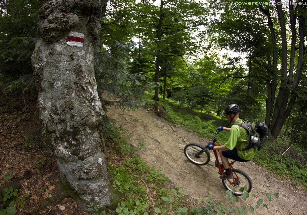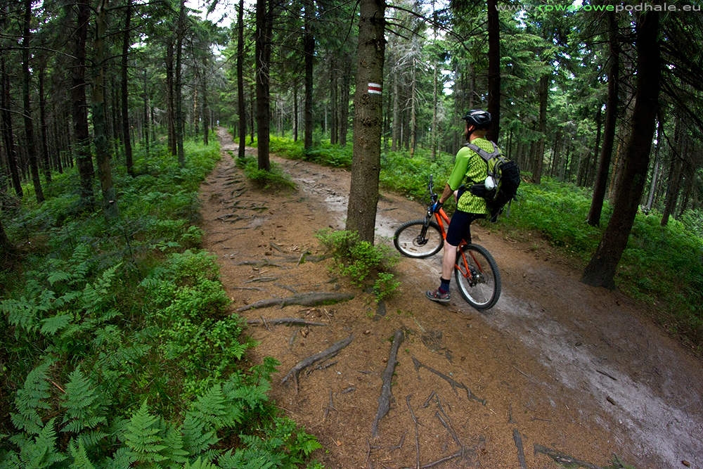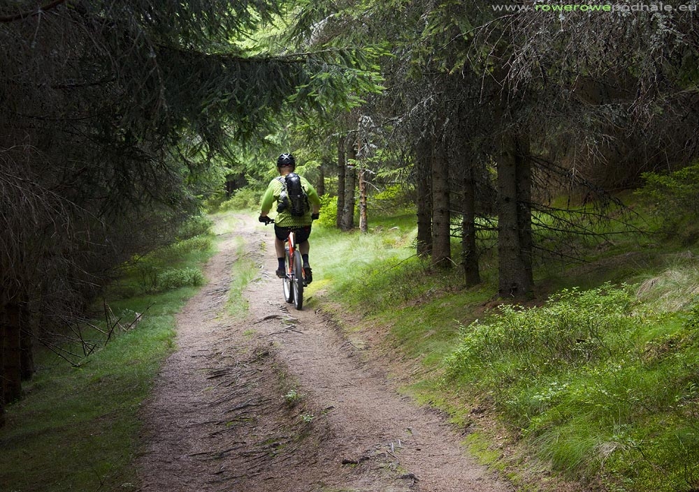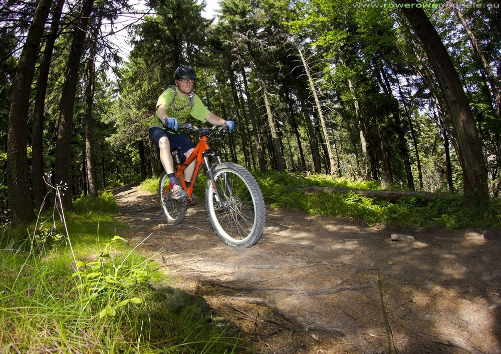 Pokonując tą trasę na rowerze, wśród drzewostanów sosnowych, świerkowych i bukowych, musimy zmierzyć się z licznymi stromymi i trudnymi podjazdami, gdzie nie obędzie się również bez wynoszenia roweru. Natomiast podczas zjazdów można napotkać trudności w postaci odcinków z luźnymi kamieniami. Jednak większość fragmentów proponowanej trasy to „miód w gębie” dla rowerzysty. Zjazdy i podjazdy wiją się między drzewami, a niejednokrotnie jedzie się wąskimi ścieżkami usłanymi suchym igliwiem i liśćmi. Korzenie i uskoki kamienne, które występują miejscami dosyć licznie, dodają wiele uroku i nie pozwolą na znudzenie.