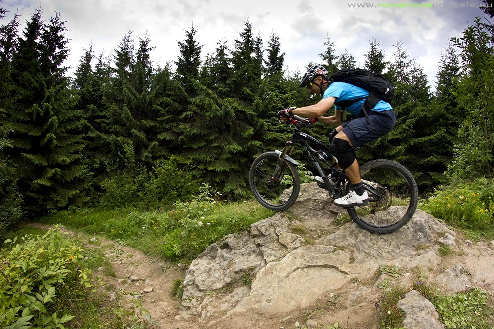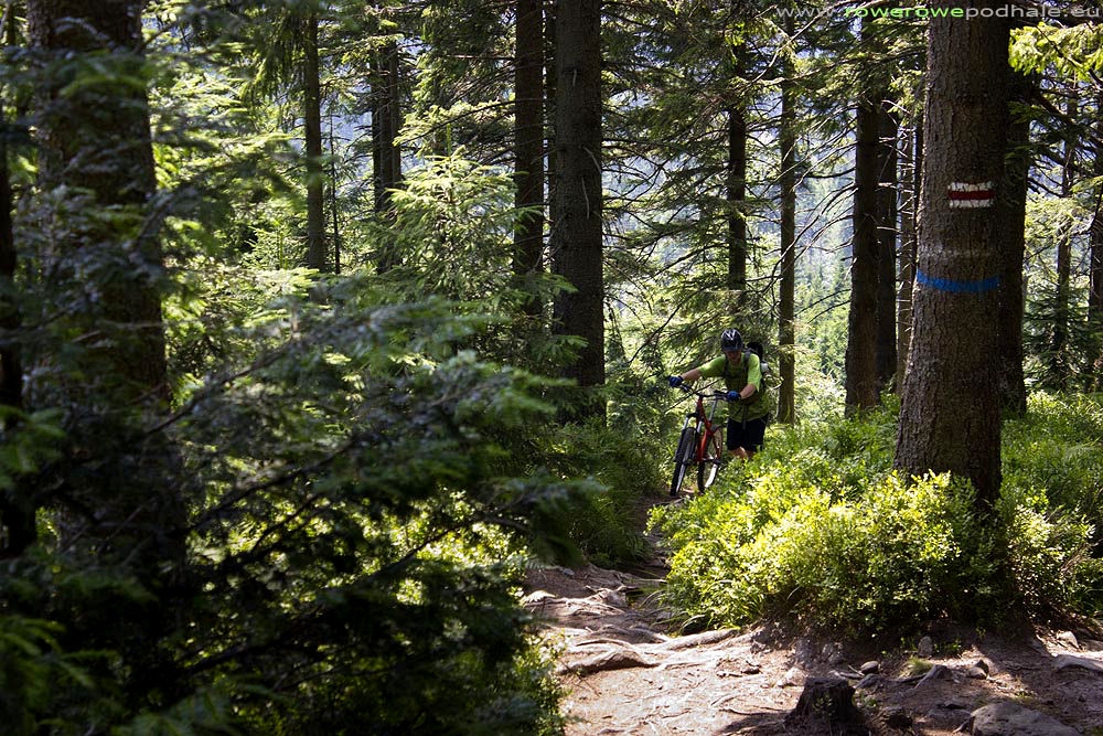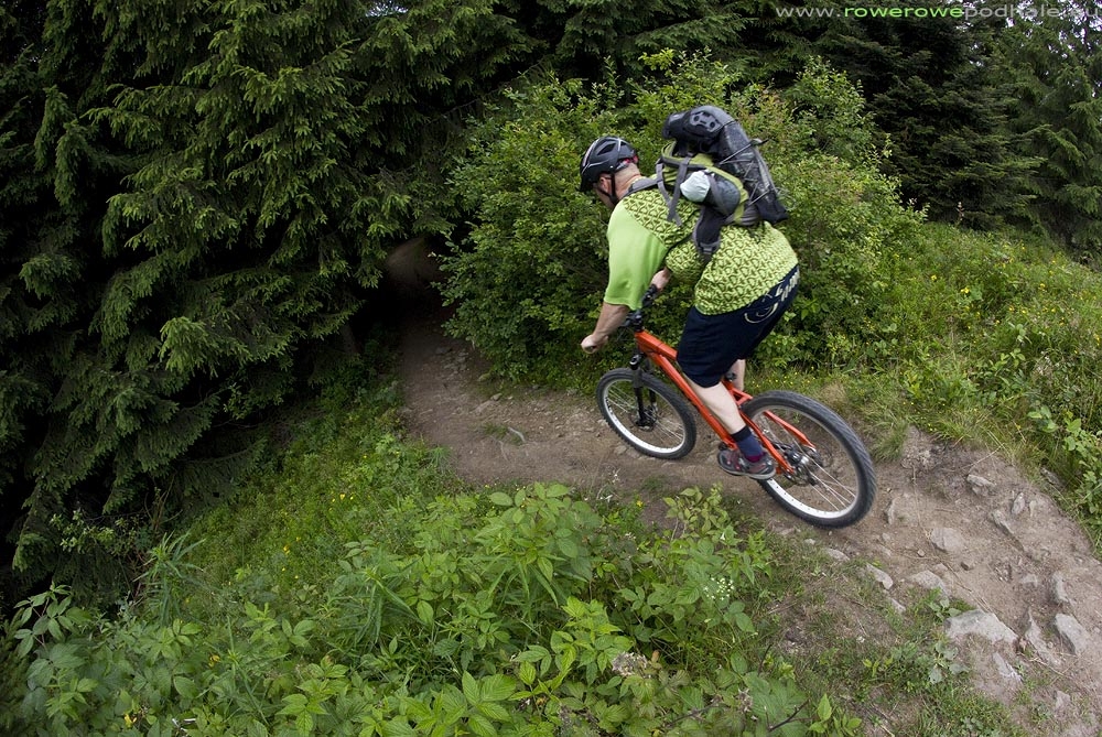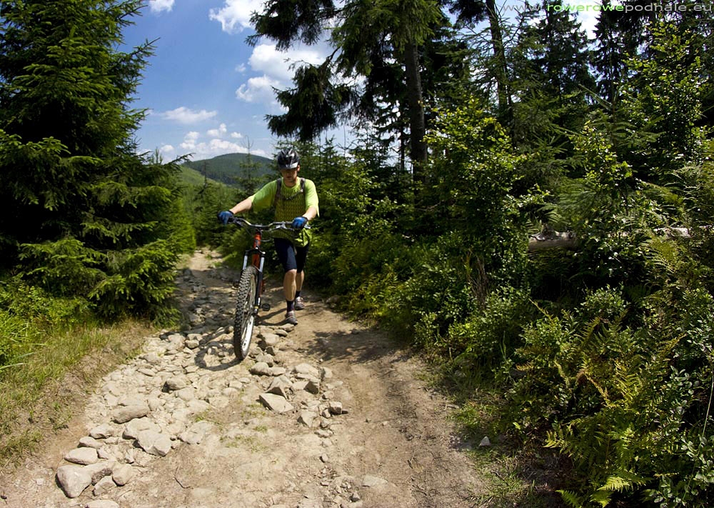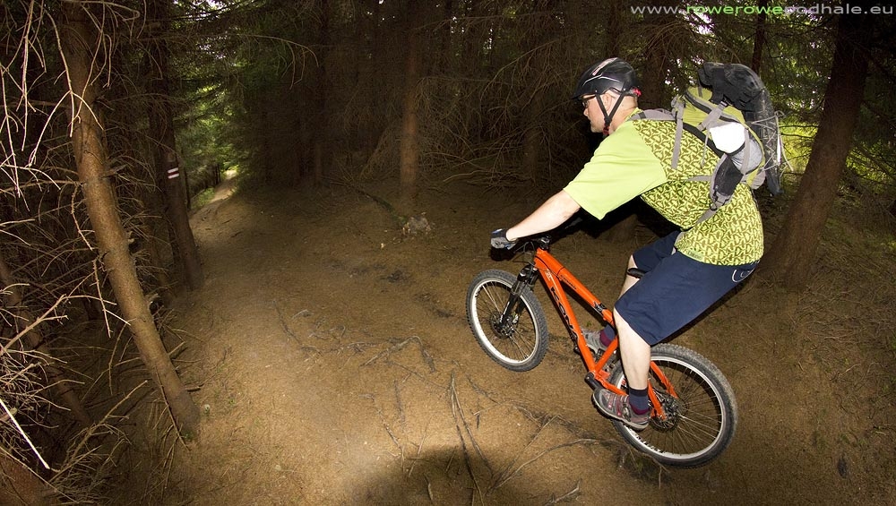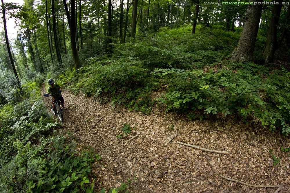 Pokonując tą trasę na rowerze, wśród drzewostanów sosnowych, świerkowych i bukowych, musimy zmierzyć się z licznymi stromymi i trudnymi podjazdami, gdzie nie obędzie się również bez wynoszenia roweru. Natomiast podczas zjazdów można napotkać trudności w postaci odcinków z luźnymi kamieniami. Jednak większość fragmentów proponowanej trasy to „miód w gębie” dla rowerzysty. Zjazdy i podjazdy wiją się między drzewami, a niejednokrotnie jedzie się wąskimi ścieżkami usłanymi suchym igliwiem i liśćmi. Korzenie i uskoki kamienne, które występują miejscami dosyć licznie, dodają wiele uroku i nie pozwolą na znudzenie.