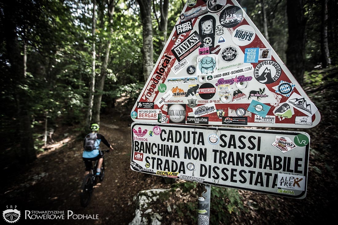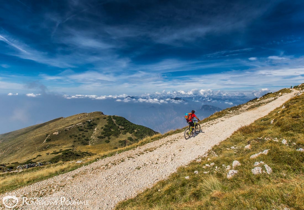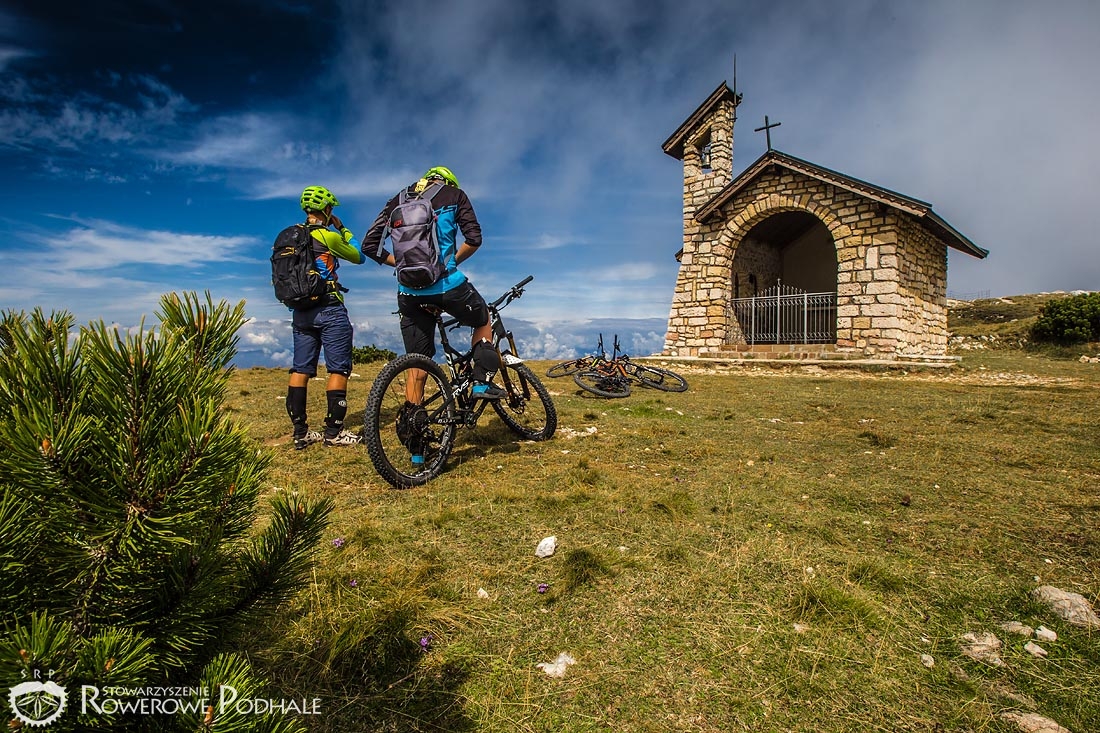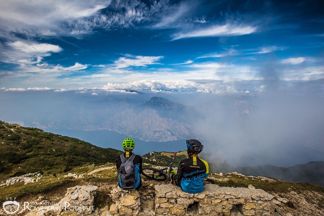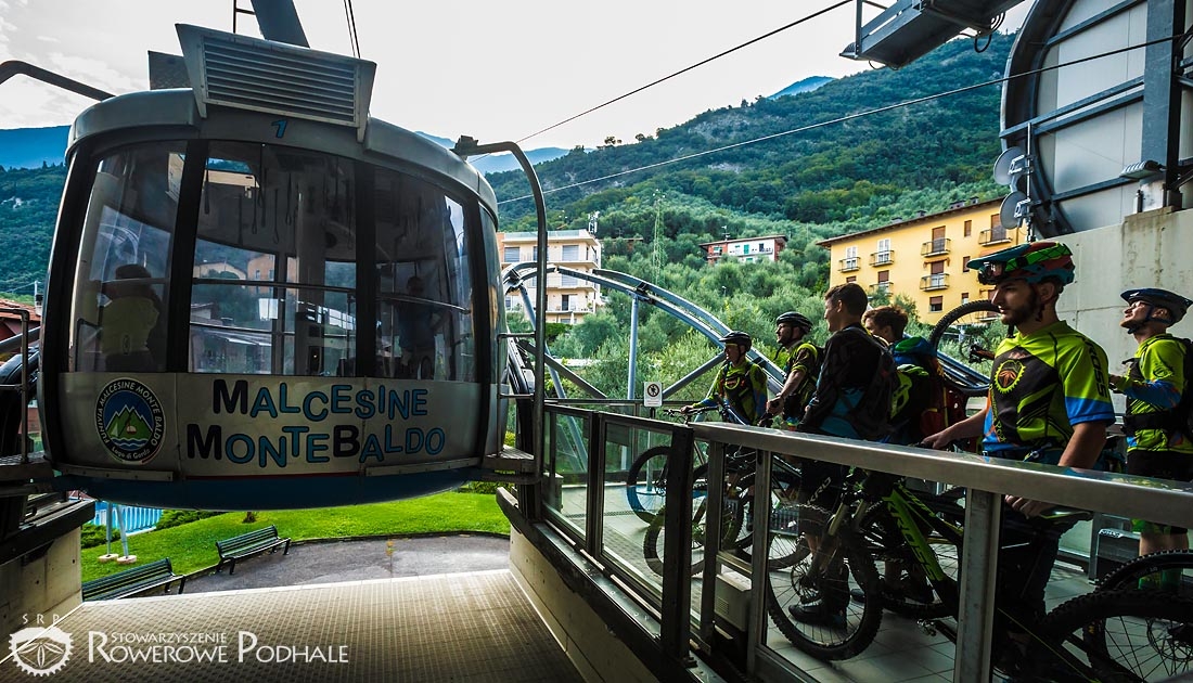 Malcesine - Monte Baldo (kolejką) – Bocca di Navene – Bocca del Creer – Monte Altissimo – Capanna Caduti del Monte Baldo (601) - Val del Diaol/The skull – Nago - Trobole – Riva del Garda [gpx]. Do Malcesine dojechaliśmy własnymi busami (na szczęście mieliśmy 2 kierowców turystycznych, którzy przetransportowali samochody do Rivy, gdzie zakończyliśmy wycieczkę). Opcja wyjazdu koleją, a nie Bike-Shuttle została wybrana ze względu na większa atrakcyjność kolejki. Wyjazd kolejką, wraz z rowerem, w godzinach porannych kosztuje 20 euro. Z Monte Baldo drogą szutrową, a następnie asfaltową, zjechaliśmy na przełęcz Bocca di Navene. Stąd łagodnie wznoszącą się, malowniczą drogą asfaltową dotarliśmy na przełęcz Bocca del Creer (Rif. Graziani). Z przełęczy to już soczysty (450 m w pionie) i bardzo widokowy podjazd drogą szutrową na Monte Altissimo (na szczycie schronisko oraz przepiękna panorama). Ze szczytu rozpoczyna się już właściwy zjazd szlakiem 601 (zjazd na początku bardzo trudny, potem trudny z fragmentami na złapanie oddechu). Pierwsza część szlaku to jazda bez trzymanki. Ścieżka pokryta jest w większości luźnymi okruchami skalnymi przeróżnych rozmiarów (miejscami krótkie sekcje z bardziej litej skały). Wraz z utratą wysokości ścieżka przybiera bardziej przyjazną postać, ale lepiej się nie dekoncentrować (ścieżka z większą ilości kamieni przytwierdzonych do podłoża). Szlakiem 601 dojechaliśmy do Capanna Caduti del Monte Baldo gdzie odbiliśmy drogą asfaltową do trasy o nazwie Val del Diaol/The skull. Trasa w większości kamienista, przeważają skały przytwierdzone do podłoża oraz długie fragmenty litej skały (generalnie na tej trasie o ściółce i korzeniach można zapomnieć)! Na trasie znajdziecie również kilka band i hopek. Trasa kończy się w miejscowości Nago – Trobole, skąd drogą asfaltową zjechaliśmy do Rivy i dalej własnymi busami wróciliśmy do apartamentów w Mezzolago.