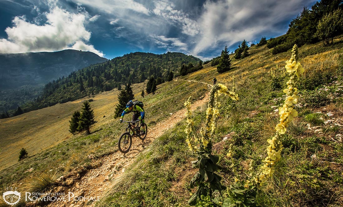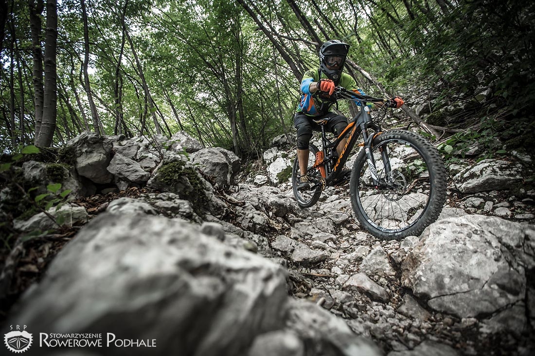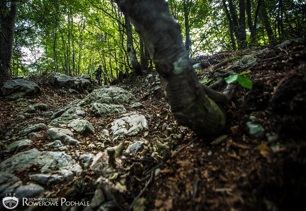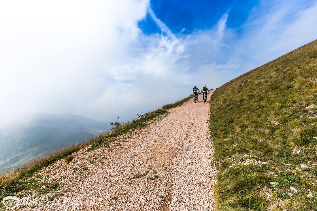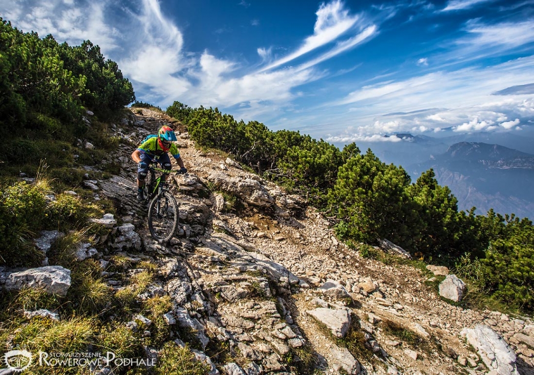 Malcesine - Monte Baldo (kolejką) – Bocca di Navene – Bocca del Creer – Monte Altissimo – Capanna Caduti del Monte Baldo (601) - Val del Diaol/The skull – Nago - Trobole – Riva del Garda [gpx]. Do Malcesine dojechaliśmy własnymi busami (na szczęście mieliśmy 2 kierowców turystycznych, którzy przetransportowali samochody do Rivy, gdzie zakończyliśmy wycieczkę). Opcja wyjazdu koleją, a nie Bike-Shuttle została wybrana ze względu na większa atrakcyjność kolejki. Wyjazd kolejką, wraz z rowerem, w godzinach porannych kosztuje 20 euro. Z Monte Baldo drogą szutrową, a następnie asfaltową, zjechaliśmy na przełęcz Bocca di Navene. Stąd łagodnie wznoszącą się, malowniczą drogą asfaltową dotarliśmy na przełęcz Bocca del Creer (Rif. Graziani). Z przełęczy to już soczysty (450 m w pionie) i bardzo widokowy podjazd drogą szutrową na Monte Altissimo (na szczycie schronisko oraz przepiękna panorama). Ze szczytu rozpoczyna się już właściwy zjazd szlakiem 601 (zjazd na początku bardzo trudny, potem trudny z fragmentami na złapanie oddechu). Pierwsza część szlaku to jazda bez trzymanki. Ścieżka pokryta jest w większości luźnymi okruchami skalnymi przeróżnych rozmiarów (miejscami krótkie sekcje z bardziej litej skały). Wraz z utratą wysokości ścieżka przybiera bardziej przyjazną postać, ale lepiej się nie dekoncentrować (ścieżka z większą ilości kamieni przytwierdzonych do podłoża). Szlakiem 601 dojechaliśmy do Capanna Caduti del Monte Baldo gdzie odbiliśmy drogą asfaltową do trasy o nazwie Val del Diaol/The skull. Trasa w większości kamienista, przeważają skały przytwierdzone do podłoża oraz długie fragmenty litej skały (generalnie na tej trasie o ściółce i korzeniach można zapomnieć)! Na trasie znajdziecie również kilka band i hopek. Trasa kończy się w miejscowości Nago – Trobole, skąd drogą asfaltową zjechaliśmy do Rivy i dalej własnymi busami wróciliśmy do apartamentów w Mezzolago.