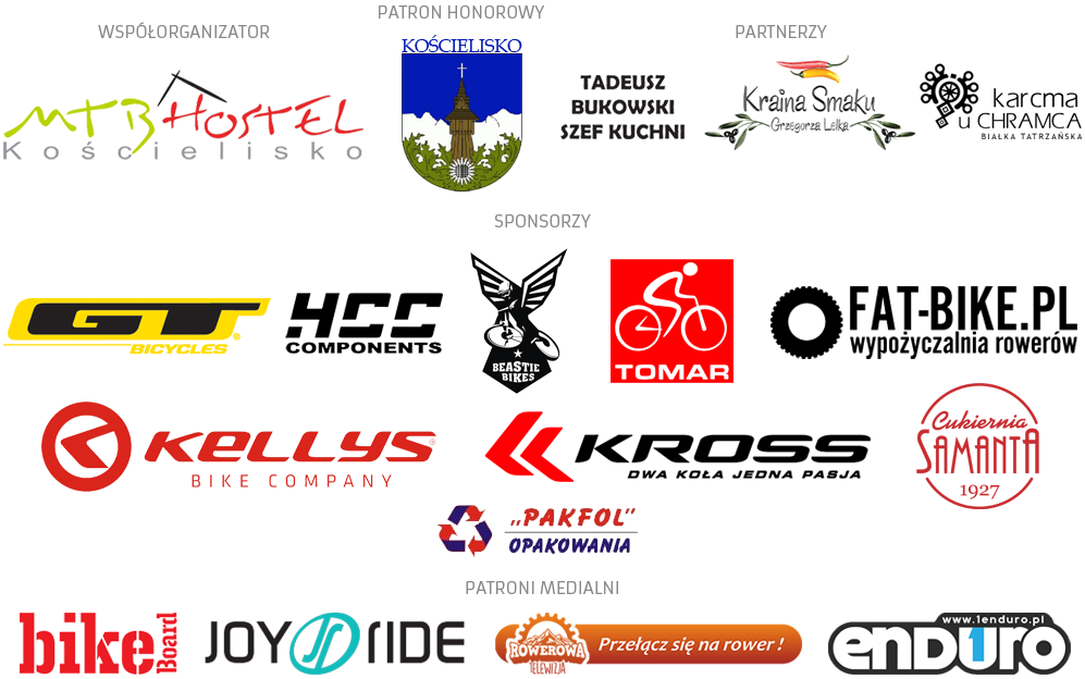SPONSORZY: GT Bicycles, HCC Components, Beastie Bikes, Kellys, Tomar Kraków - sklep rowerowy, Kross, fat-bike.pl, Cukiernia Samanta Zakopane, Pakfol Opakowania